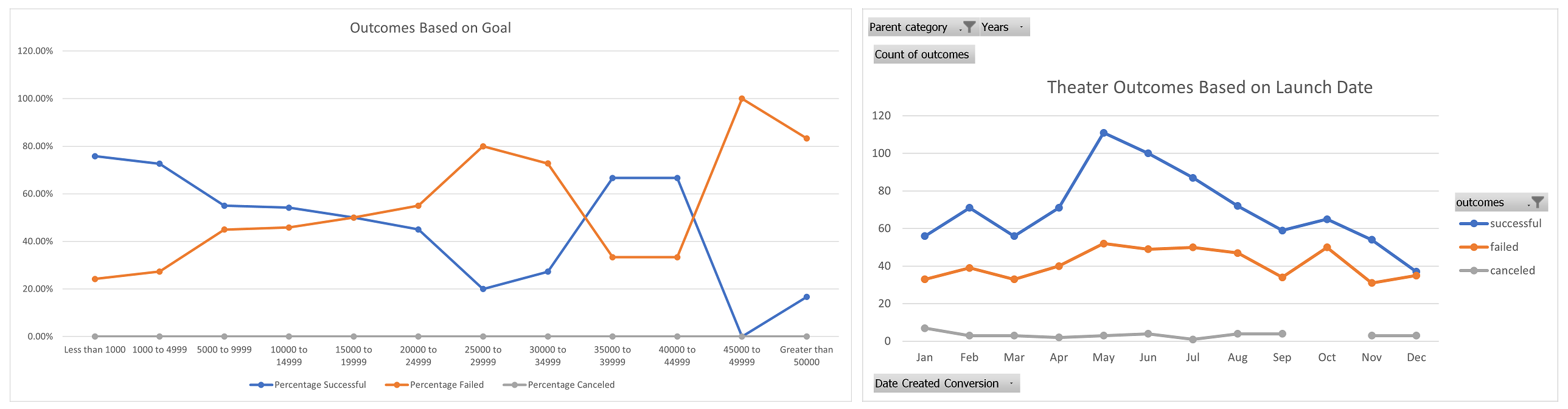 Analysis on data of Kickstarter campaigns and how they performed in relation to their launch dates and funding goals.