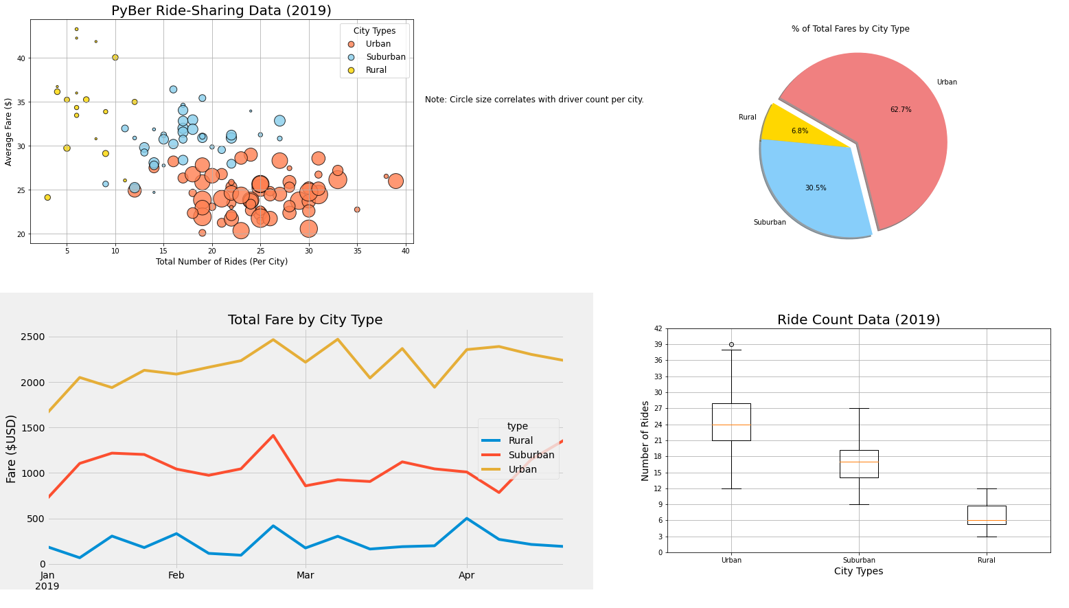 PyBer, a ride-sharing application company, has requested an analysis of all the rideshare data from January to early May 2019. The purpose of this analysis is to help improve access to ride-sharing services and determine affordability for underserved neighborhoods with compelling visualizations.