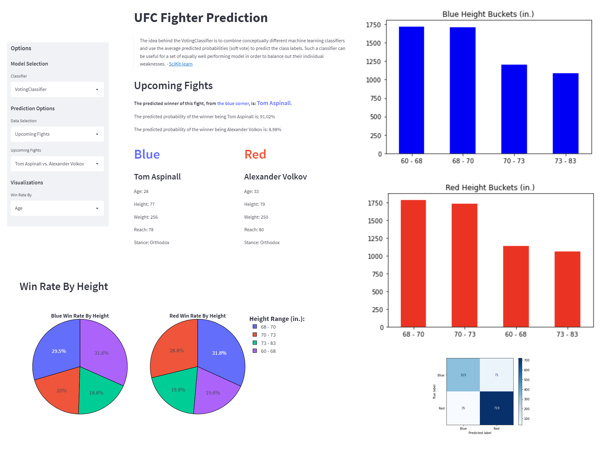 The UFC Fight Prediction project aims to create an interactive dashboard that allows users to predict the outcome of UFC fights with machine learning models.