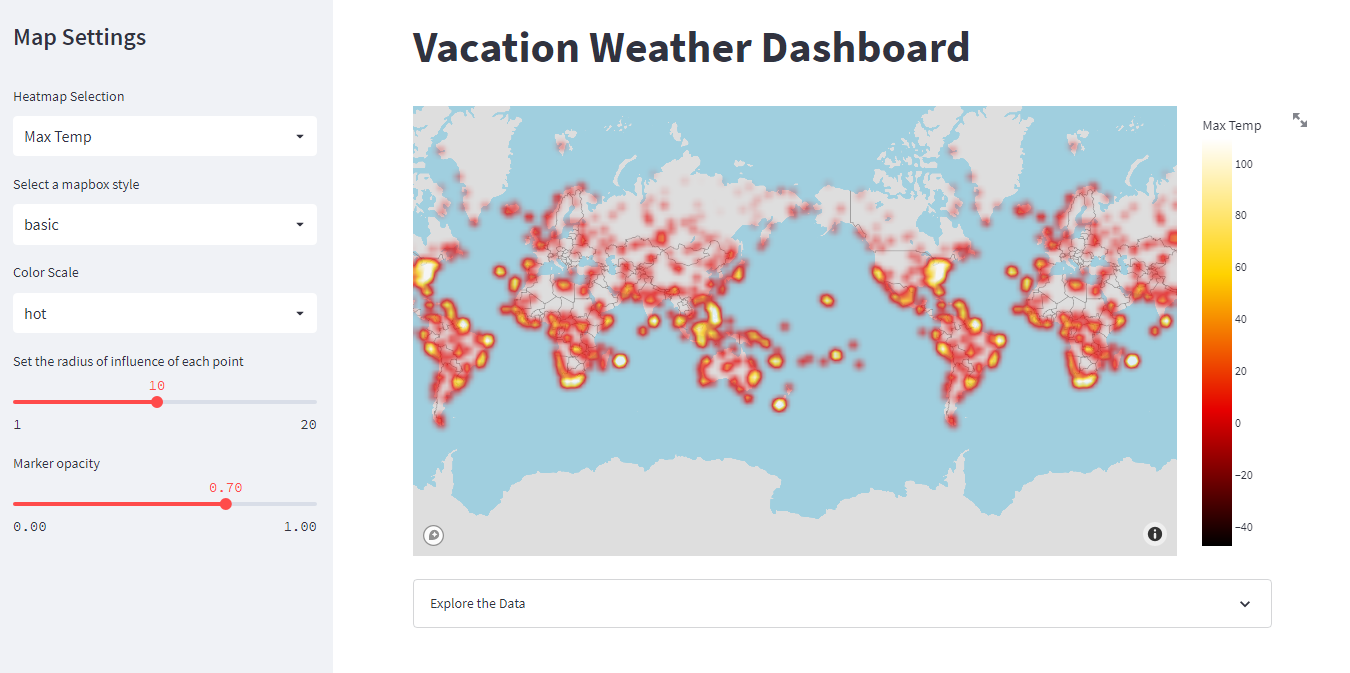 Streamlit dashboard to visualize weather conditions and possible cities for taking a vacation.
